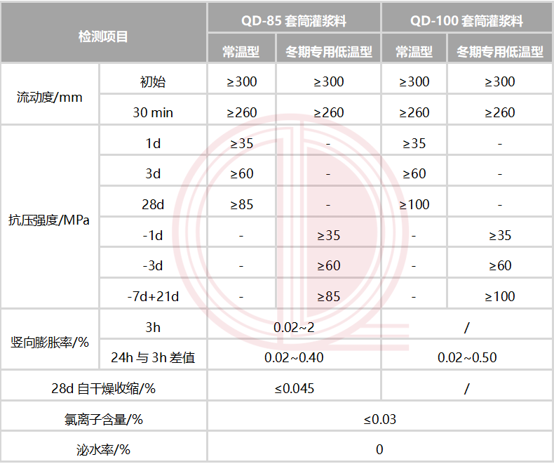 ③漿體微膨脹,長期使用無收縮。